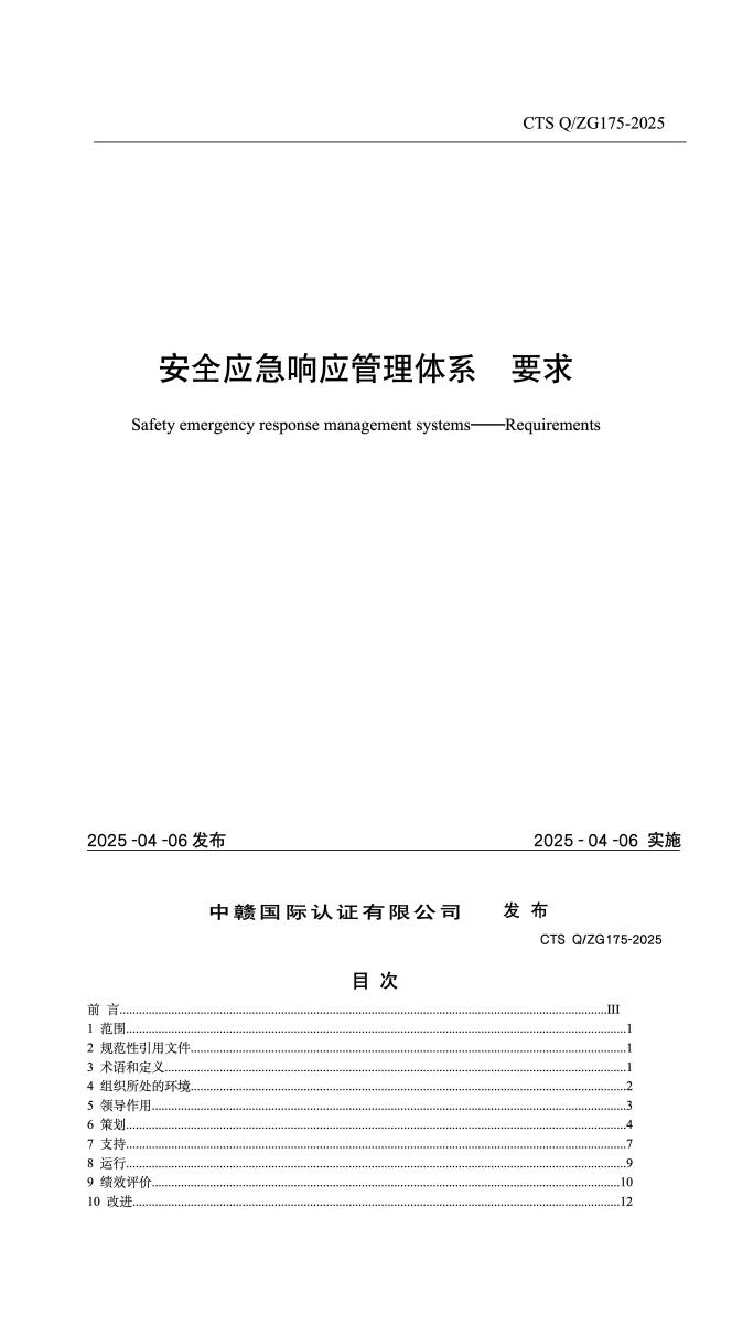 安全应急响应管理体系认证依据