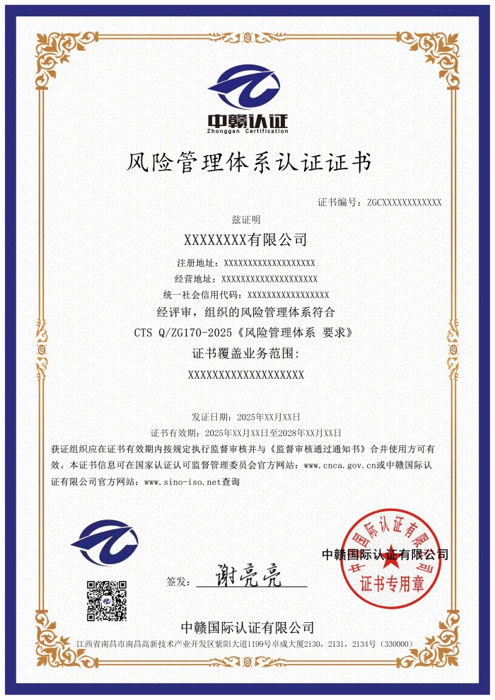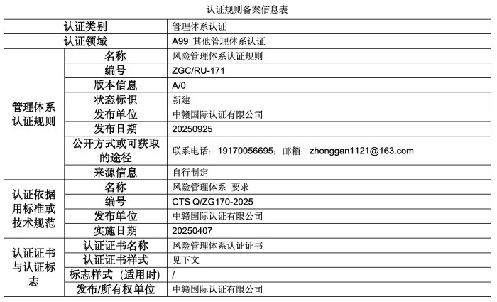 本次公示的认证规则版权归属于中赣国际认证有限公司(以下简称“本机构”),本机构享有最终解释权。未经本机构书面许可,任何组织或个人不得以任何形式全部或部分使用、复制或传播本公告涉及的认证规则信息(法律法规另有规定的除外)。