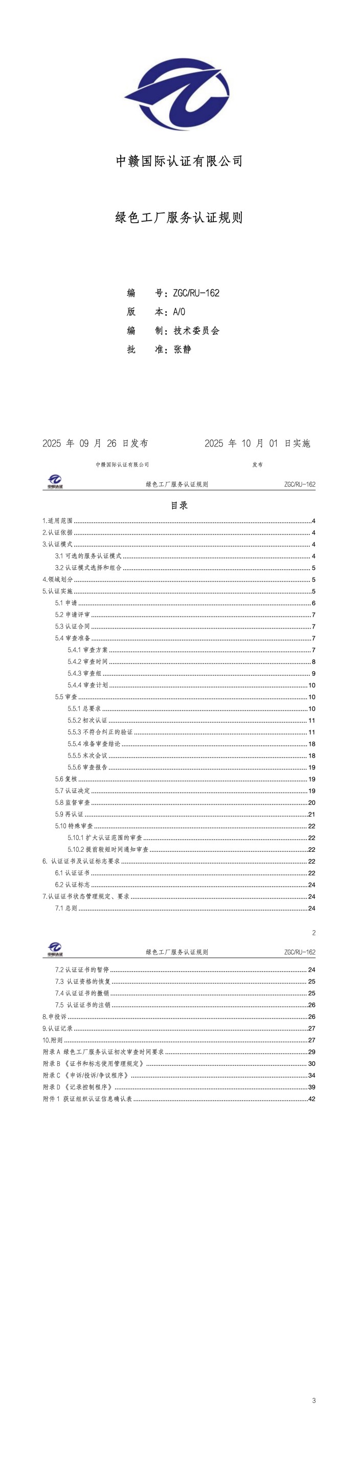 本次公示的认证规则版权归属于中赣国际认证有限公司(以下简称“本机构”),本机构享有最终解释权。未经本机构书面许可,任何组织或个人不得以任何形式全部或部分使用、复制或传播本公告涉及的认证规则信息(法律法规另有规定的除外)。