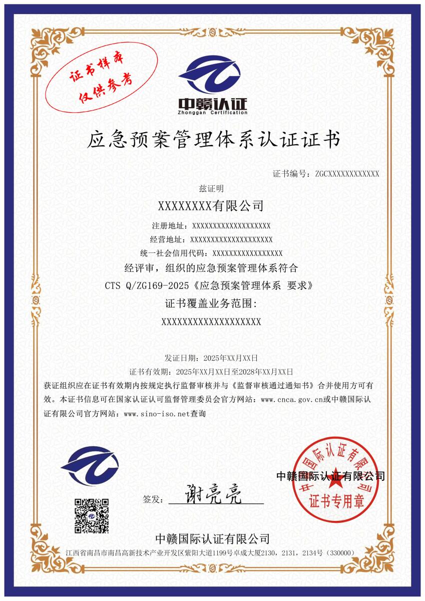应急预案管理体系认证证书