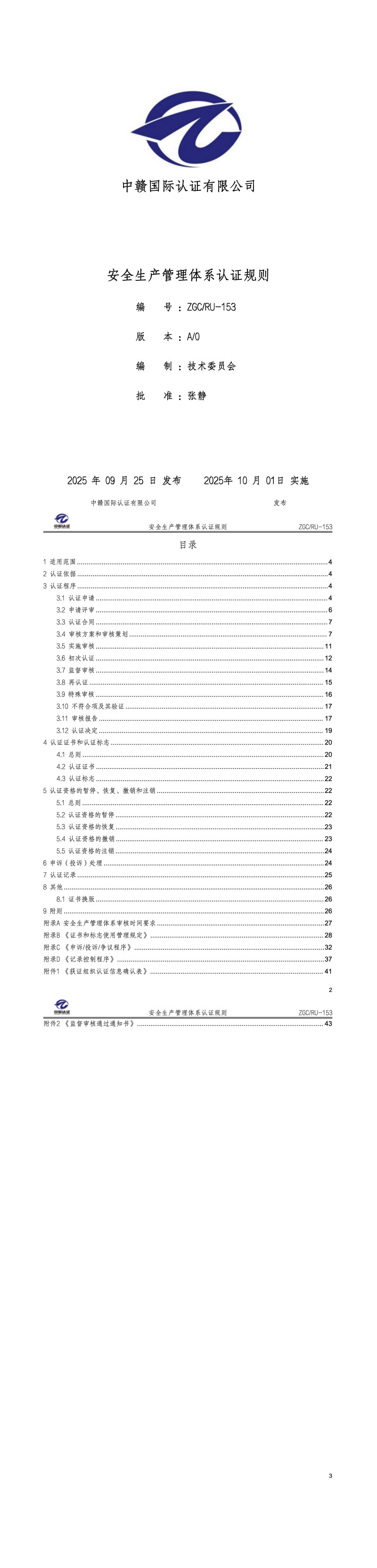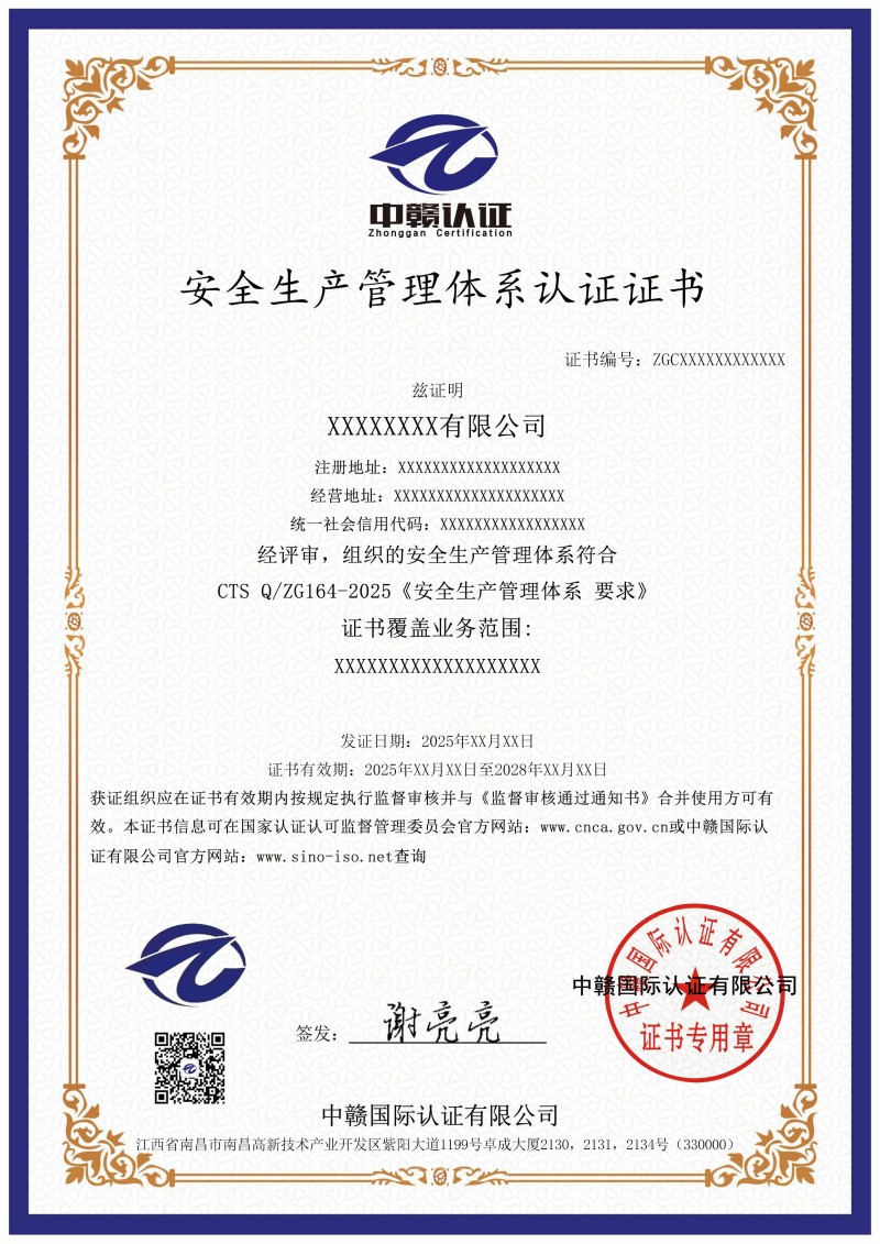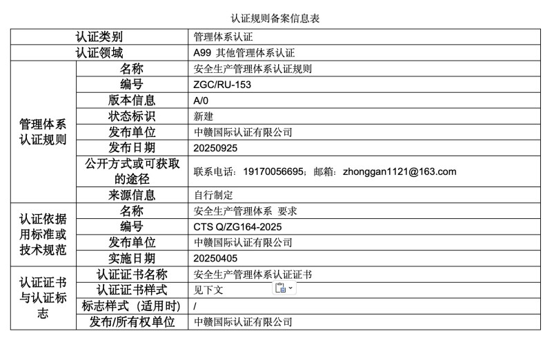 本次公示的认证规则版权归属于中赣国际认证有限公司(以下简称“本机构”),本机构享有最终解释权。未经本机构书面许可,任何组织或个人不得以任何形式全部或部分使用、复制或传播本公告涉及的认证规则信息(法律法规另有规定的除外)。