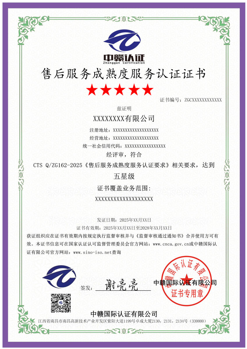 本次公示的认证规则版权归属于中赣国际认证有限公司(以下简称“本机构”),本机构享有最终解释权。未经本机构书面许可,任何组织或个人不得以任何形式全部或部分使用、复制或传播本公告涉及的认证规则信息(法律法规另有规定的除外)。