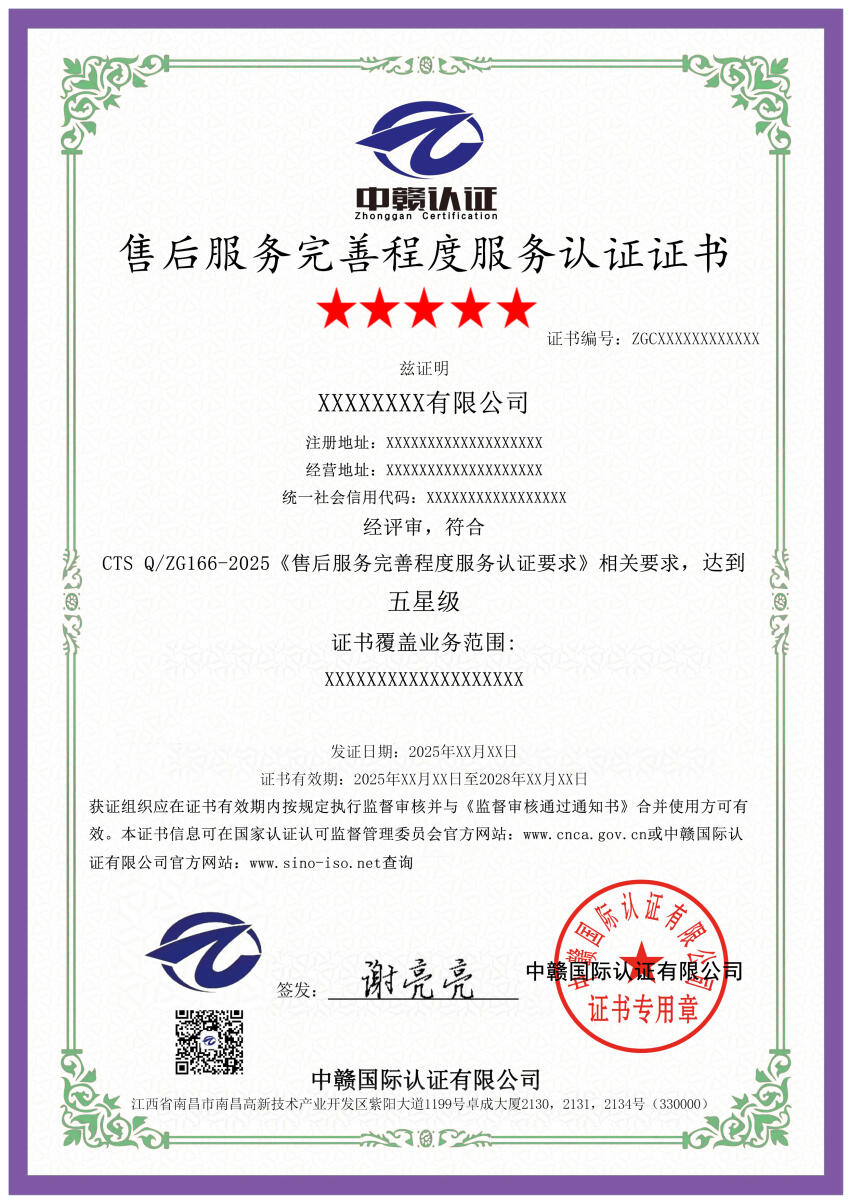 售后服务完善程度服务认证规则及认证依据