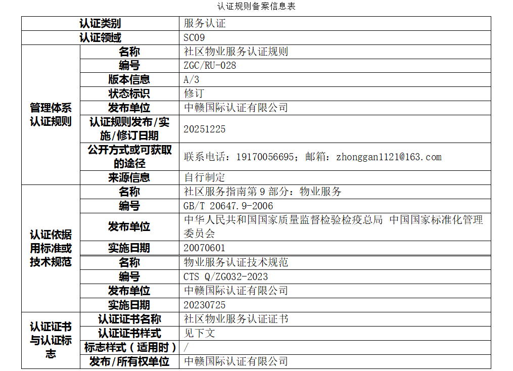 本次公示的认证规则版权归属于中赣国际认证有限公司(以下简称“本机构”),本机构享有最终解释权。未经本机构书面许可,任何组织或个人不得以任何形式全部或部分使用、复制或传播本公告涉及的认证规则信息(法律法规另有规定的除外)。