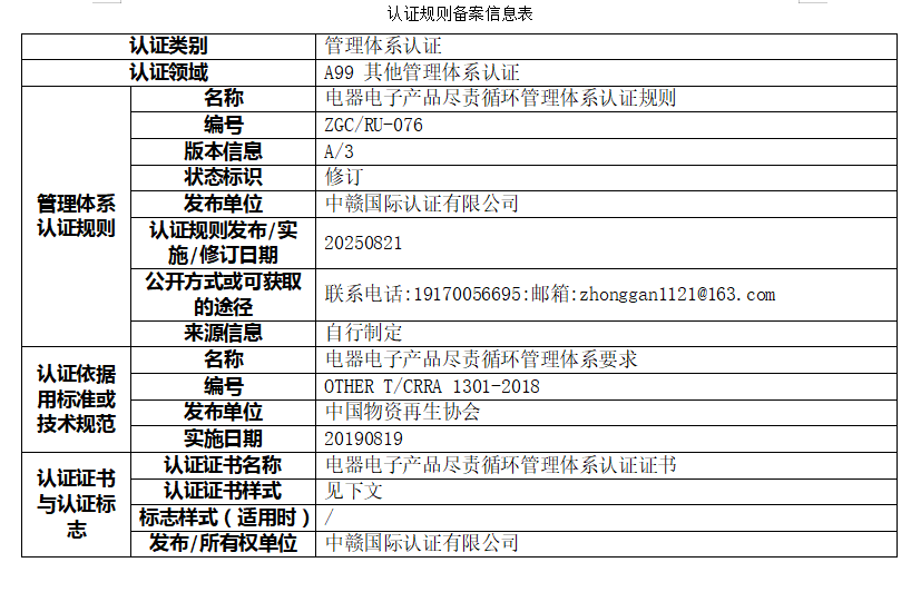 电器电子产品尽责循环管理体系认证规则及认证依据