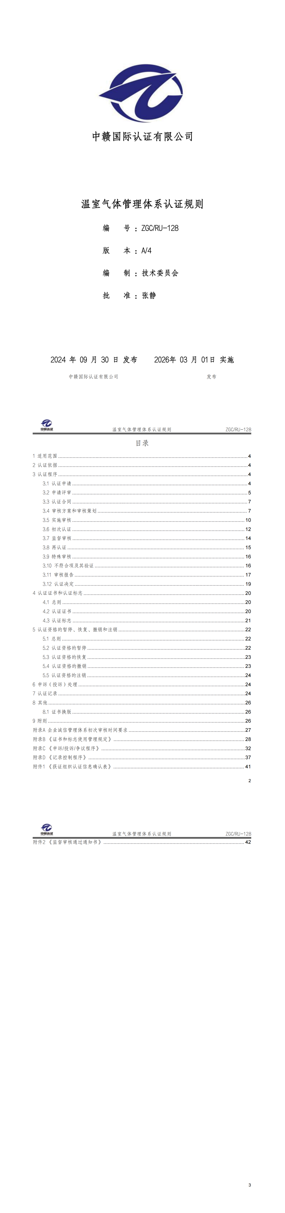 认证规则封面及目录: