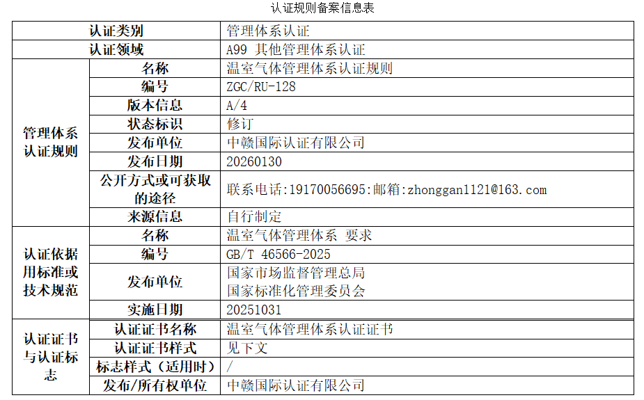 温室气体管理体系认证规则及认证依据