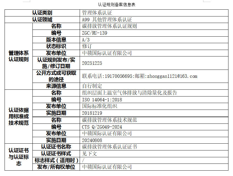 本次公示的认证规则版权归属于中赣国际认证有限公司(以下简称“本机构”),本机构享有最终解释权。未经本机构书面许可,任何组织或个人不得以任何形式全部或部分使用、复制或传播本公告涉及的认证规则信息(法律法规另有规定的除外)。