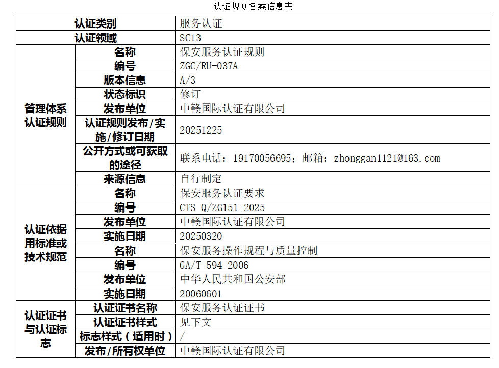 保安服务认证规则及认证依据