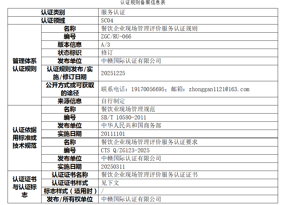 餐饮企业现场管理评价服务认证规则及认证依据