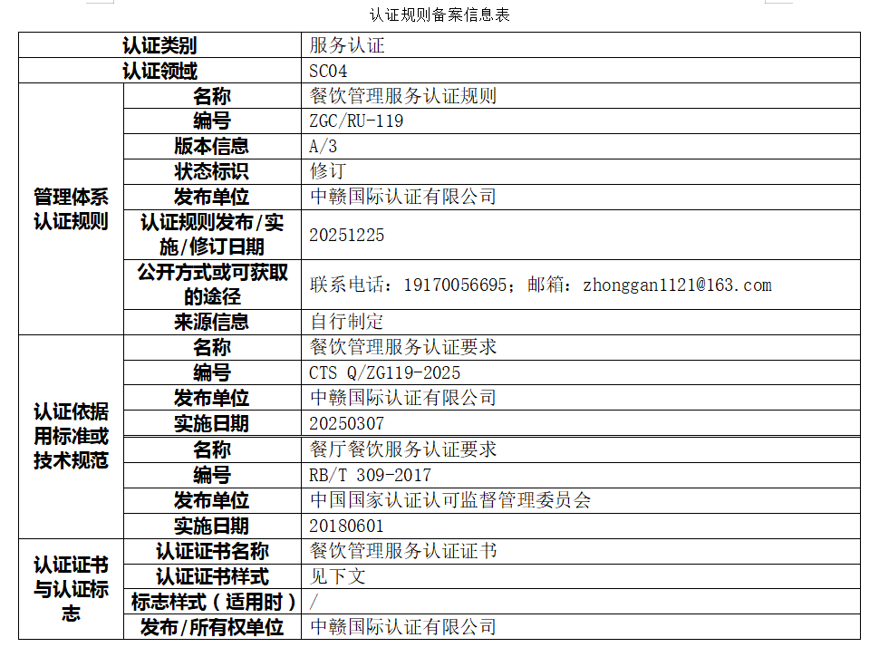 本次公示的认证规则版权归属于中赣国际认证有限公司(以下简称“本机构”),本机构享有最终解释权。未经本机构书面许可,任何组织或个人不得以任何形式全部或部分使用、复制或传播本公告涉及的认证规则信息(法律法规另有规定的除外)。
