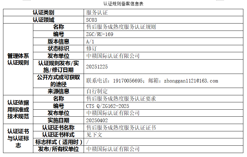 本次公示的认证规则版权归属于中赣国际认证有限公司(以下简称“本机构”),本机构享有最终解释权。未经本机构书面许可,任何组织或个人不得以任何形式全部或部分使用、复制或传播本公告涉及的认证规则信息(法律法规另有规定的除外)。