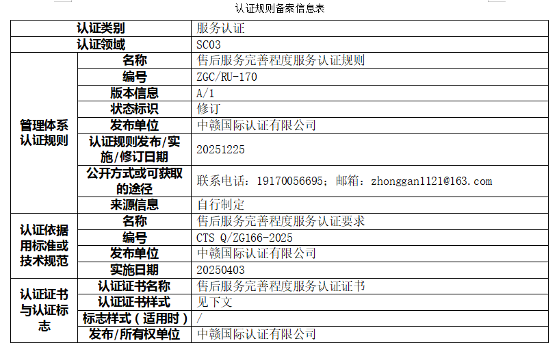本次公示的认证规则版权归属于中赣国际认证有限公司(以下简称“本机构”),本机构享有最终解释权。未经本机构书面许可,任何组织或个人不得以任何形式全部或部分使用、复制或传播本公告涉及的认证规则信息(法律法规另有规定的除外)。