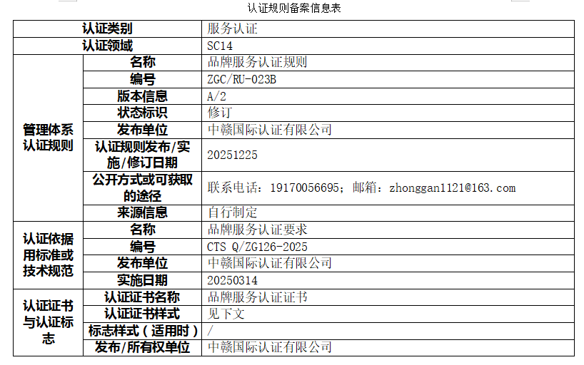 本次公示的认证规则版权归属于中赣国际认证有限公司(以下简称“本机构”),本机构享有最终解释权。未经本机构书面许可,任何组织或个人不得以任何形式全部或部分使用、复制或传播本公告涉及的认证规则信息(法律法规另有规定的除外)。